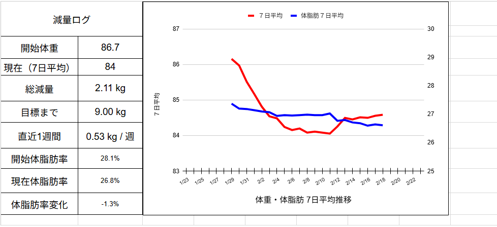ゆっくり落ちてる~!水分ではなく、ちゃんと脂肪が落ちてる感がある