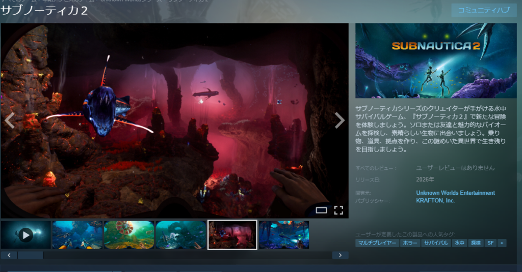 てか、サブノーティカ2がたのしみだ、いつ早期アクセスくるんだろうか~